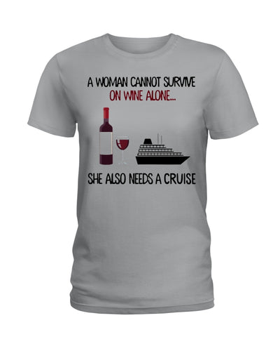 A Woman Needs A Cruse To Survive On Wine Ladies Tee
