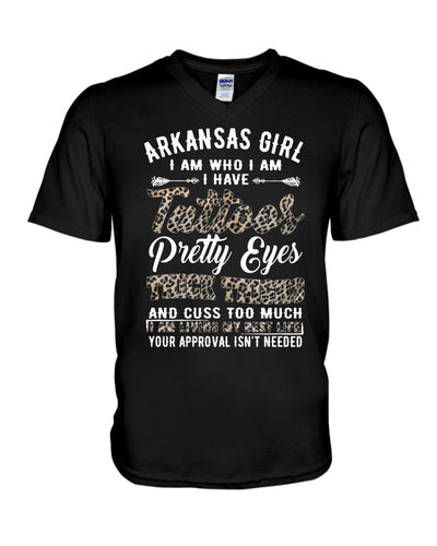 Arkansas Girl Have Tattoos Pretty Eyes Gifts For Arkansas Girls Guys V-Neck