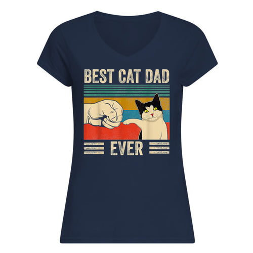 Best Cat Dad Ever Retro Vintage Great Gift For Father's Day Ladies V-Neck