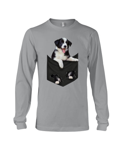 Border Collie In Pocket Personalized Name Gifts For Dog Lovers Unisex Long Sleeve