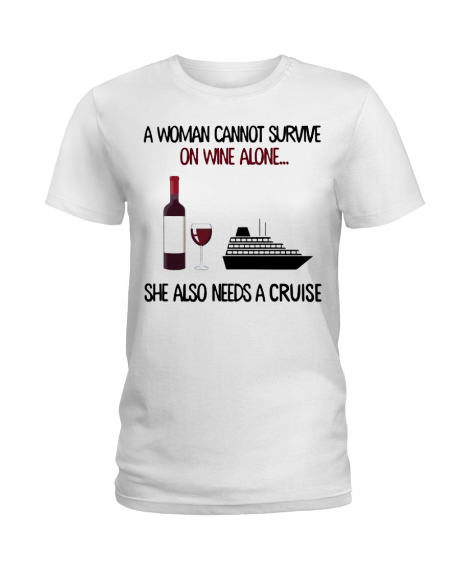 A Woman Needs A Cruse To Survive On Wine Ladies Tee