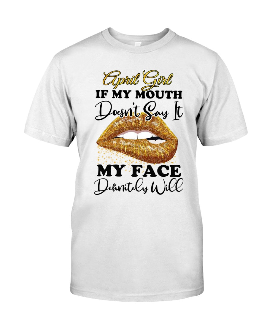 April Girl If My Mouth Doesn't Say It My Face Definitely Will Custom Design Guys Tee