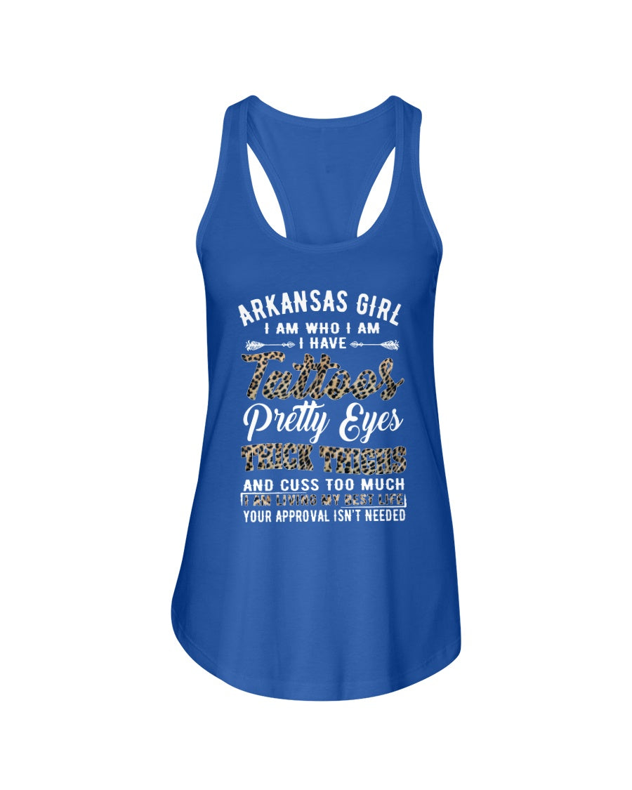 Arkansas Girl Have Tattoos Pretty Eyes Gifts For Arkansas Girls Ladies Flowy Tank