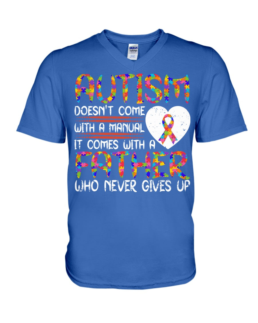 Autism Comes With A Father Who Never Gives Up Guys V-Neck