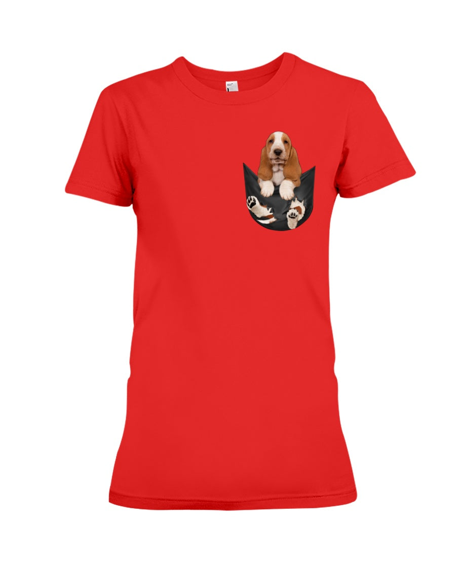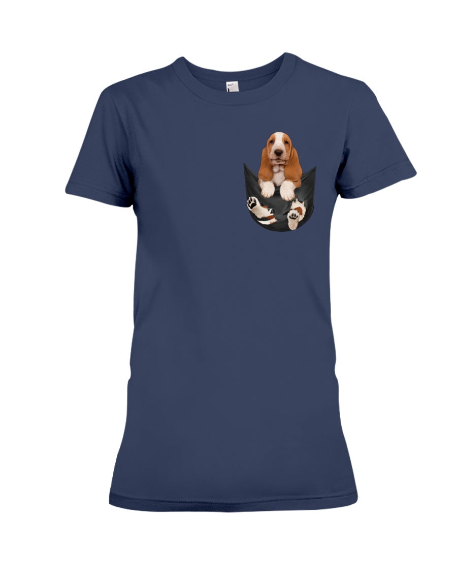 Basset Hound In Middle Pocket For Dog Lovers Ladies Tee