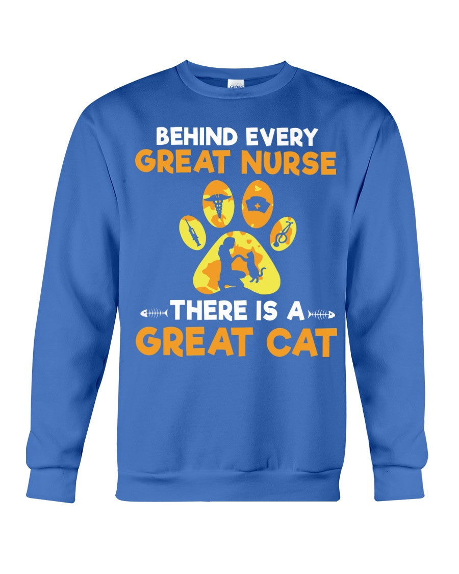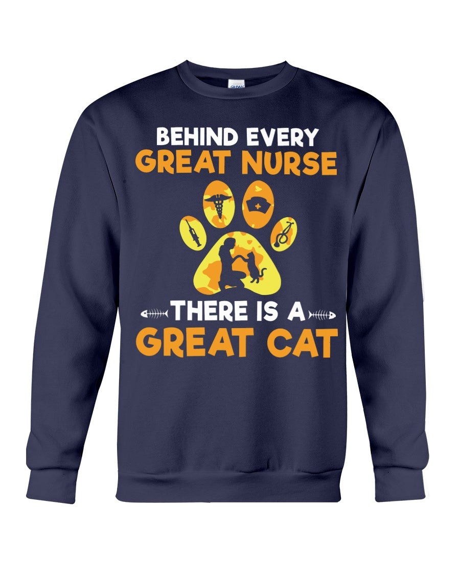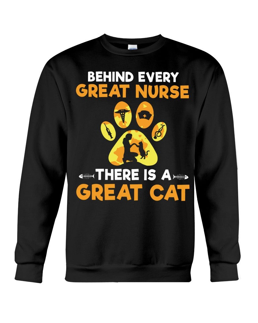 Behind Every Great Nurse There Is A Great Cat Custom Design Sweatshirt