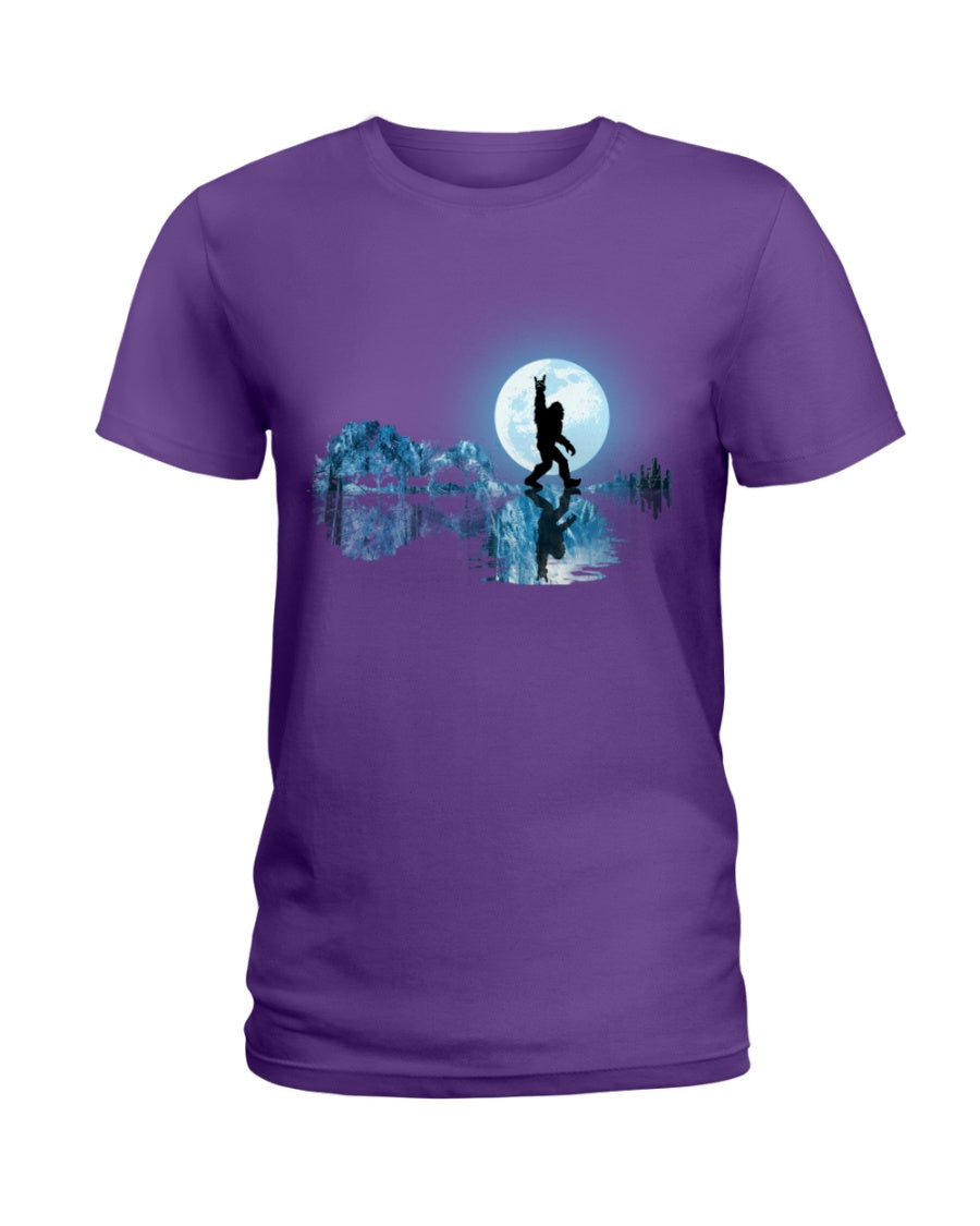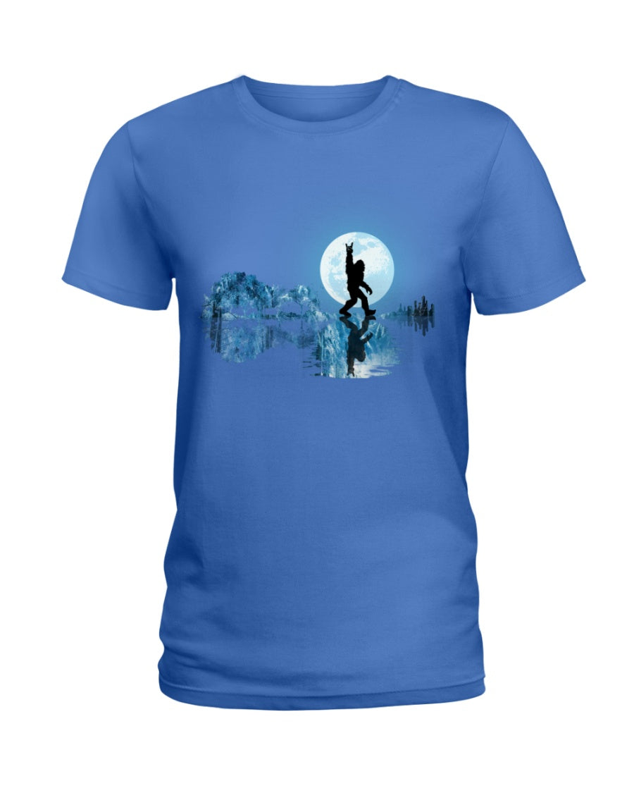 Bigfoot Guitar And Lake  Meaningful Gifts For Bigfoot Lovers Ladies Tee