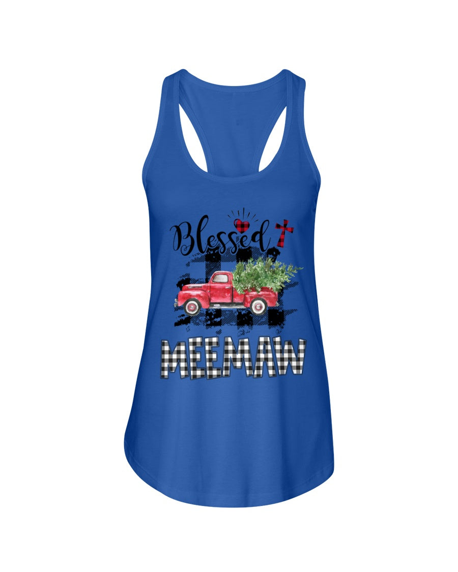 Blessed Meemaw Black And White Plaid Driving Car Custom Design Gifts Ladies Flowy Tank